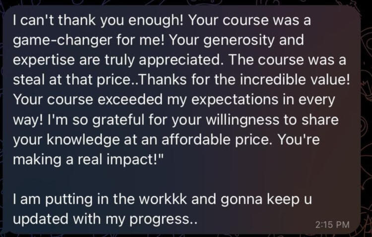 students have experienced incredible transformations through these courses, and their glowing reviews speak for themselves. From mastering productivity to building aesthetic bodies at home or making their first profits in trading